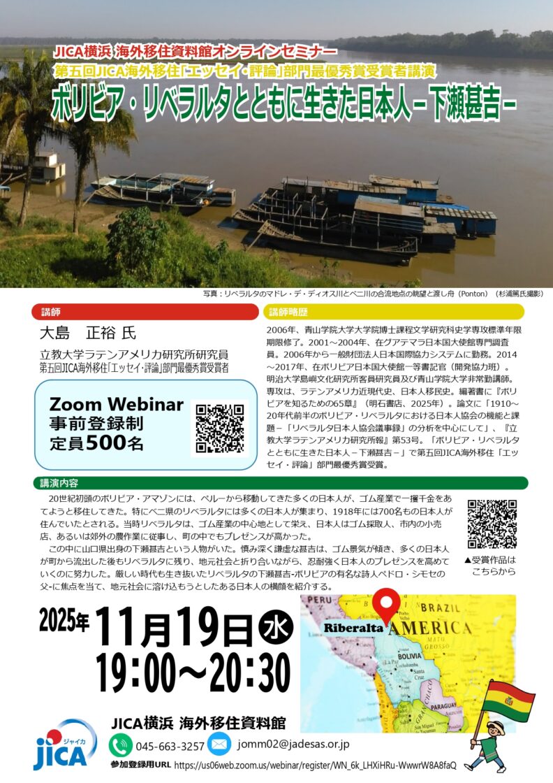 <オンラインセミナー> ボリビア・リベラルタとともに生きた日本人-下瀬甚吉-